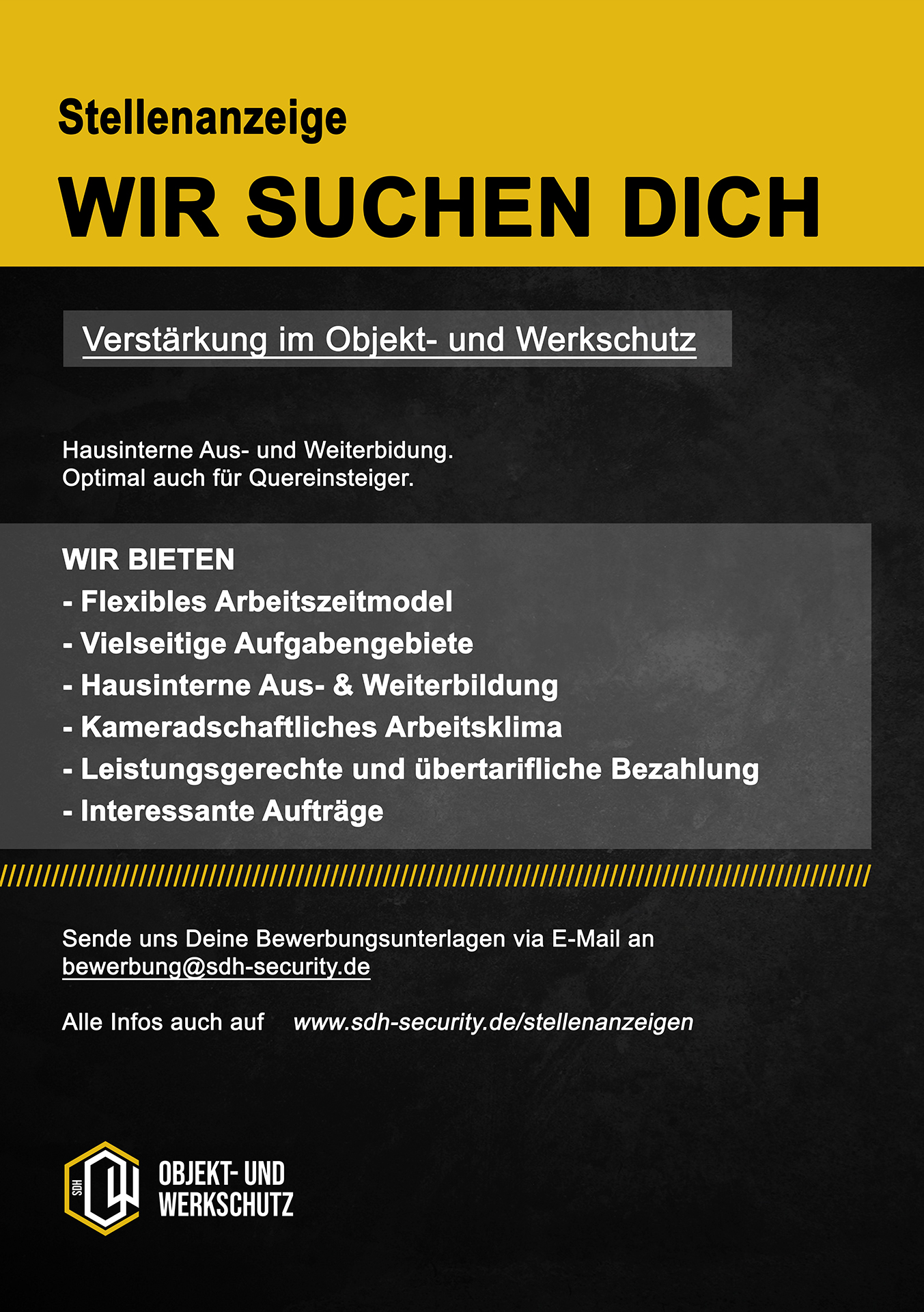 Schick uns Deine Bewerbung via E-Mail an ,,Bewerbung@SDH-Security.de''